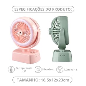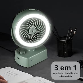 Ventilador 3 em 1 Bivolt - Ventilador, Umidificador e Luminária Ventilador Portátil com Umidificador, Luz de LED Recarregável e Ajustável em 90º