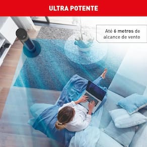 O Ventilador de Torre Arno Eole Ultra combina frescor intenso e silencioso, com até *6 m de alcance de vento. Seu design moderno que integra ao ambiente, também possui painel touch. Controle remoto incluso, oferece 3 níveis de velocidade, conta com 2 modos automáticos, o noturno com vento leve e super silencioso para uma noite de sono tranquila e o modo brisa, com fluxo de ar contínuo para um frescor similar ao vento natural. Timer programável até 7horas, oscilação de 60 com distribuição de ar muito mais concentrada e desligamento automático após 12 horas.