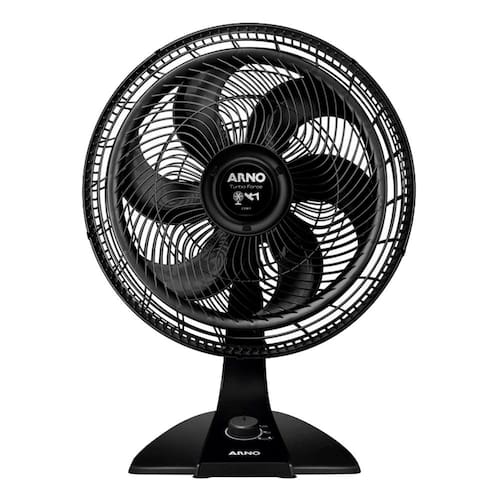 Deixe os ambientes da sua casa muito mais agradáveis, refrescantes e silenciosos com o novo Ventilador de Mesa Arno Turbo Force 40 cm, super forte e silencioso.Este produto é perfeito para qualquer tipo de ambiente pois possui 6 pás para um potente fluxo de ar, inclinação acionada por um botão lateral, grades aerodinâmicas e seguras para crianças, e uma oscilação horizontal de 80 graus para uma ótima distribuição de ar.Além disso, o Ventilador de Mesa Arno Turbo Force apresenta a Power Zone, uma área concentrada que garante o máximo de vento direcionado, oferecendo performance superior e controle para que você não se preocupe com mais nada e pare de sofrer com o calor.Além de conforto e bem-estar, o Ventilador de Mesa Arno Turbo Force possui a função Eco Fresh que economiza até 20% de energia ajudando na redução do consumo e nos gastos com a conta de luz.Fácil de montar e desmontar, com apenas um clic você já pode aproveitar o máximo de vento e frescor sem se preocupar com a manutenção já que é super-resistente e fácil de transportar.Com a garantia da marca Arno, número 1 e especialista há mais de 60 anos em ventilação, o novo Turbo Force conta com a tecnologia para levar eficiência, praticidade e economia para o seu dia a dia sempre com muita segurança e durabilidade.Novo Ventilador de Mesa Arno Turbo Force: super forte e silencioso! Você imagina, clic, a Arno faz.Especificações TécnicasConteúdo da Embalagem: 1 ventilador + 1 manual de instruçõesCor: PretoPotência: 110V / 220VConsumo (kW/h*/mês): 3,84Número de Velocidades: 3Vazão: 1,41Velocidade de Rotação Máxima (rpm): 1500rpmDiâmetro da Hélice (cm): 40cmDiâmetro da Grade (cm): 49cmTipo de Material: Polipropileno - PPPorta-Fios: NãoVelocidade de Rotação: 1500Diâmetro (em cm): 40cmTipo de Embalagem Individual: Caixa IndividualClaim: Super forte e silenciosoDescrição CurtaVentilador de Mesa Arno Turbo Force 40 cm, super forte e silencioso. Este produto é perfeito para qualquer tipo de ambiente, pois possui 6 pás para um potente fluxo de ar, 3 velocidades e 40cm de diâmetro.Dimensões e PesoLargura: 49cmAltura: 65cmProfundidade: 35,5cmComprimento c/embalagem: 49,3cmLargura c/embalagem: 34,1cmAltura c/embalagem: 55,5cmPeso: 2800gPeso c/embalagem: 4100gGarantia de 12 meses por defeitos de fabricação