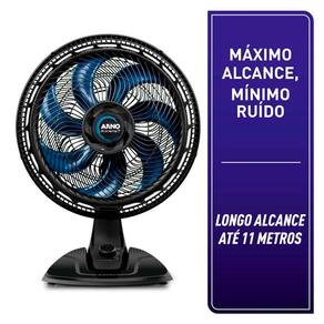Máximo alcance, mínimo ruído! Máximo alcance de vento de até 11* metros, O novo Ventilador X-treme 7 Mesa é extremamente potente, com 7 pás e 3 velocidades.