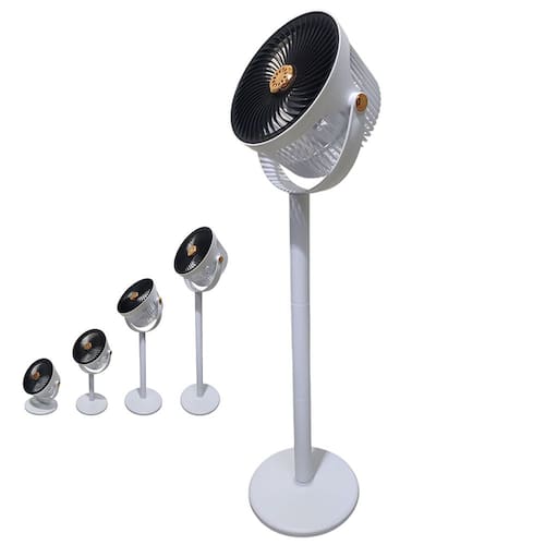 O ventilador possui altura ajustável, podendo deixar sob a mesa ou mesmo no chão.
