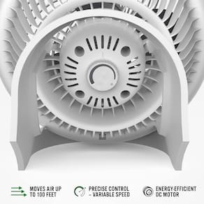 - Ação potente de vórtice — experimente o poder de resfriamento superior da tecnologia de circulação de ar Vortex exclusiva da Vornado. Este ventilador com eficiência energética possui um motor CC sem escovas que garante um fluxo de ar ideal, movendo o ar de forma eficiente em toda a sua sala para conforto em toda a sala.