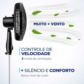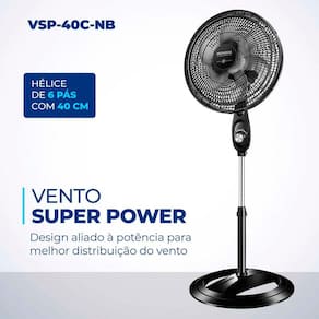 Ventilador de 40cm + 6 pás: a linha de ventiladores super power alia o design à potência para promover maior intensidade do vento. É garantia de um ambiente fresco e agradável Coluna ajustável: possui regulagem de 1,19 a 1,50 metros, permitindo o ajuste ideal da altura do vento Mais silêncio e conforto: o sistema de ventilação da mondial apresenta baixo nível de ruído, assegurando o silêncio necessário para uma excelente noite de sono Maior distribuição de ar: o sistema oscilante contínuo permite maior fluxo de ar Inclinação vertical regulável: para um direcionamento ideal do fluxo do ar Controle de velocidade: as 3 opções de velocidade permitem adequar o vento à sua necessidade.