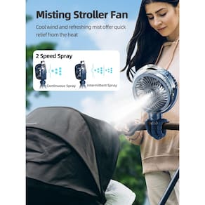 - Ventilador de névoa de resfriamento - Este é um ventilador de carrinho com função de nebulização, em vez de soprar ar quente, o ventilador de névoa pulveriza enquanto circula o ar, o que pode esfriar rapidamente em segundos, apresentando uma verdadeira frescura refrescante para o seu bebê inquieto. Experiência que acalma os adultos.