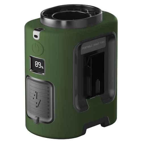 -?Ventilador portátil externo preferido?Um ventilador pessoal multifuncional com recursos 5 em 1: ventilador de cintura, ventilador de pescoço, ventilador portátil, ventilador de mesa e fonte de alimentação de emergência. Ele atende a todas as suas necessidades internas e externas. Perfeito para locais de trabalho, fazendas, entregas, jardinagem, caminhadas, pesca e outras atividades. Ele previne eficazmente a insolação, mantém as mãos livres e ajuda você a se refrescar enquanto trabalha, facilitando o combate ao calor.