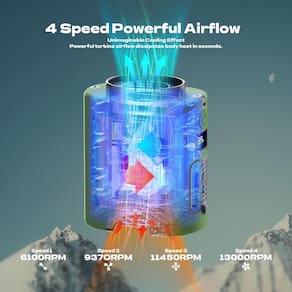 - [Fluxo de ar poderoso de 4 velocidades] O ventilador de correia tem 4 velocidades de vento ajustáveis, que podem ser alteradas livremente de acordo com o calor. A velocidade de 6100 rpm (1ª marcha), 9370 rpm (2ª marcha), 11.450 rpm (3ª marcha), 13.000 rpm (4ª marcha) e a velocidade da primeira e da segunda marcha são equivalentes ao nível mais alto de outros ventiladores wasit. O sopro de ar poderoso e fresco mantém você fresco durante os dias quentes - a qualquer hora, em qualquer lugar.