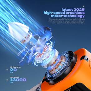 - [Ventilador de cintura portátil totalmente atualizado] Este ventilador de cintura de ponta apresenta a mais recente tecnologia de motor sem escova de 2025, atingindo impressionantes 13.000 RPM — o dobro da velocidade dos ventiladores de correia tradicionais. Projetado com 9 lâminas em espiral e uma estrutura simplificada em forma de foguete, ele minimiza a resistência do ar, fornecendo um fluxo de ar mais focado e poderoso a velocidades de até 20 pés/s. Com um simples toque no botão, você pode desfrutar de uma brisa refrescante e instantânea que o resfria com eficiência, tornando os dias quentes de verão mais confortáveis.