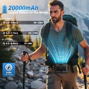 - ?Resfriamento máximo de 235 horas ? – Ventilador de cintura recarregável equipado **Bateria ampliada de 20.000 mAh** alimenta até **235 horas no máximo** de resfriamento e carregamento rápido em apenas **6 horas**, mantendo você atualizado o dia todo!
