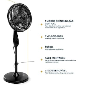 O Ventilador de Coluna Britânia possui 3 velocidades ajustáveis: suave, moderada e intensa, adaptando-se às suas preferências. A estrutura inclui oscilação horizontal automática e vertical em 3 posições, além de altura ajustável em até 14cm com coluna telescópica.