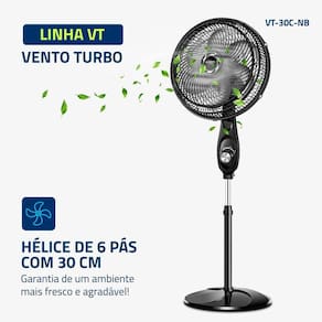 Linha Turbo com 30 cm de diâmetro e hélice de 6 pás. O design aerodinâmico proporciona forte ventilação e melhor distribuição de ar.