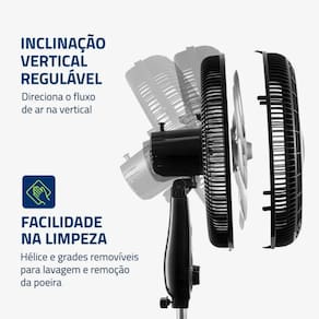 Hélice de 8 pás com 40cm de diâmetro para maior circulação de ar. Coluna ajustável