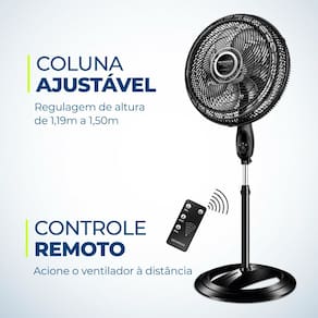 O Ventilador de Coluna Super Turbo VTX-40C-8P-CR da Mondial possui 40 cm de Diâmetro e Hélice de 8 pás, o que promove uma circulação de ar mais eficiente e garante mais frescor ao ambiente. Com coluna ajustável entre 1,19 e 1,50 Metros, o ventilador permite ajuste da altura do vento. Acompanha controle remoto com painel touch, garantia de mais praticidade para ajuste de velocidade à distância. O 1° ventilador de 8 pás do Brasil! O design aerodinâmico e de alta performance do VTX Super Turbo proporciona maior intensidade do vento e melhor distribuição de ar. O resultado é um ambiente mais fresco e arejado!