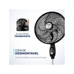 A grade frontal removível oferece mais facilidade na limpeza das hélices, simplificando a lavagem e a remoção de poeira, garantindo melhor qualidade do ar. Além disso, a alça de e porta-fio embutido permitem transportar o ventilador com facilidade e armazenar o fio elétrico dentro do aparelho após o uso.