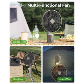 - 3--1: Com um suporte de tripé, a altura do ventilador oscilante pode ser totalmente ajustada para 37 polegadas e, quando o tripé é removido, ele pode ser transferido para um ventilador de mesa. Ou pendurar o ventilador em um local adequado cria uma brisa aérea. É conveniente para uso interno e externo, esteja você na cama, almoçando com sua família, trabalhando em um laptop ou acampando ao ar livre. E o tripé permite que o ventilador seja colocado em um terreno externo instável.