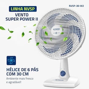 O ventilador Mondial Super Power II tem 30 cm de diâmetro e hélice com 6 pás, que proporcionam um fluxo de ar intenso para criar um ambiente mais agradável.
