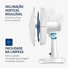 As grades frontal e traseira, juntamente com a hélice, são removíveis, facilitando a limpeza e manutenção do aparelho.