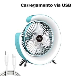 Ventilador de Mesa Colorido Silencioso com Luz Forte LED Ventilador portátil colorido Desktopfan vento fresco basta conectá-lo a um carregador ou dispositivo USB e pronto Você terá horas de uso contínuo sem se preocupar com interrupções.