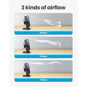 - Configuração de três velocidades - Configuração de baixa/média/alta velocidade. Pressione o botão liga/desliga repetidamente para ajustar a velocidade apropriada do ventilador. A terceira marcha com design de velocidade variável oferece mais opções em diferentes ambientes de temperatura.
