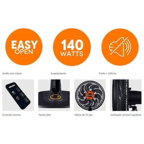 O único do mercado com exclusiva hélice 15 pás, ele possui uma potência de 140W, que garante maior eficiência. Conta ainda inclinação vertical, grade removível com novos clicks para fácil limpeza. Possui eficiência energética de categoria A nas 3 velocidades, o que gera mais economia na conta de energia, mesmo aproveitando ventos fortes.