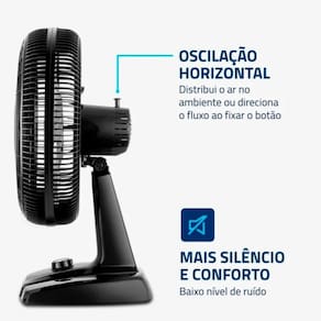 O Ventilador Mondial Turbo 8 Pás possui 40 cm de diâmetro e um design aerodinâmico responsável por uma ventilação forte e melhor distribuição de ar, ideal para um ambiente fresco e muito ventilado. O sistema de ventilação da Mondial é silencioso e proporciona o conforto necessário para momentos de concentração e uma excelente noite de sono. O sistema oscilante horizontal amplia o raio de alcance do vento, você escolhe distribuir o ar no ambiente ou fixar o botão e direcionar o fluxo. Conta com as 3 opções de velocidade permitem adequar o vento à sua necessidade: Máxima, Média e Mínima. A Grade frontal removível oferece mais facilidade na limpeza das hélices, o que simplifica a lavagem e a remoção de poeira, e garante melhor qualidade do ar. Além do design compacto, a alça traseira permite que o ventilador seja transportado entre os cômodos da casa com facilidade. Com o porta-fio embutido, você armazena o fio elétrico dentro do aparelho após o uso. A Mondial é a escolha de milhões de consumidores. Mondial, a escolha inteligente CARACTERÍSTICAS: - Vento Turbo - Mais Silêncio e Conforto - 8 Pás - Controle de velocidade - 3 velocidades - Inclinação vertical regulável - Alça de transporte e Porta-Fio DADOS TÉCNICOS: - Voltagem: 127v - Potência: 140W - Tipo de ventilador: Ventilador de Mesa - Diâmetro da hélice: 40 cm - Quantidade de pás: 8 - Material: PP - Número de velocidades: 3 velocidades - Coluna ajustável: Não - Inclinação regulável: Sim - Oscilante: Sim - Medidas AxLxP : 65x48x32 cm - Peso: 2,9 Kg - : 12 meses CONTEÚDO DA EMBALAGEM: - Ventilador de Mesa Mondial 40cm Turbo NVT-40-8P-B - Manual de instruções Aqui na Loja O Pescador de Ofertas, você pode concluir a sua compra facilmente, com toda a segurança e a sua entrega é garantida. Aqui você está em 1º Lugar Ean: 7899882317633