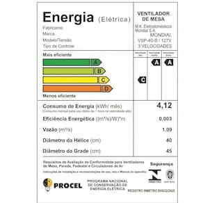 Ventilador de Mesa VSP-40B possui a hélice possui melhor design aerodinâmico, permitindo a maior vazão do ar, o que proporciona um vento forte, tornando o ambiente fresco e arejado, mais silêncio e conforto. Menos barulho, proporcionando bem-estar para toda família. O ventilador Turbo possui baixo nível de ruído, você pode conversar tranquilamente, assistir TV e manter o ambiente confortável, arejado e sempre ventilado, controle de velocidade. As 3 velocidades permitem adequar o nível de ventilação a sua necessidade. As velocidades: máxima turbo, média conforto, mínima silencioso, são ideais para dormir com o vento moderado e com silêncio garantido, proporcionando uma noite de sono tranquila. Sistema oscilante, permite ampliar a distribuição de ar pelo ambiente, deixando-o mais agradável e ventilado. Inclinação vertical regulável - Direciona o fluxo do ar: Ajuste fácil e seguro para distribuir melhor o ar e deixar o ambiente mais agradável.