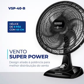 Ventilador de Mesa Mondial 6 Pás Super Power Preto VSP-40-B - 40cm 220V