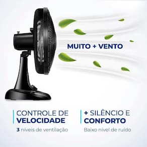 CONTROLE DE VELOCIDADE: As 3 opções de velocidade permitem adequar o vento à sua necessidade: Máxima Turbo, Média Conforto e Mínima Silencioso.
