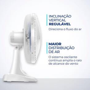 Como ele faz menos barulho, com qualquer uma das 3 velocidades, você dorme com ventinho e silêncio garantidos. Para ambientes mais amplos, você pode usar seu sistema oscilante. Já sua inclinação vertical regulável direciona o fluxo de ar para cima ou para baixo.