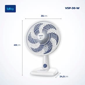 O ventilador Super Power VSP-30-W possui 30 cm de diâmetro e hélice com 6 pás, garantindo um ambiente mais refrescante e agradável. Já o sistema de ventilação da Mondial apresenta baixo nível de ruído e assegura o silêncio necessário para momentos de concentração e uma excelente noite de sono. Saiba mais sobre o VSP-30-W: