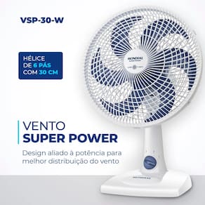 VENTO SUPER POWER: A linha de Ventiladores Super Power possui 30cm de diâmetro e 6 Pás. O design, aliado à potência, promove maior intensidade do vento e é garantia de um ambiente fresco e agradável.