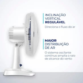 Cor Branco/Azul Escuro Voltagem (Tensão) 220V Itens inclusos 01 Ventilador e 01 Manual de Instruções Potência 60W Dimensões do produto 51,00x35,00x28,00 Número de velocidades 3 Quantidade de pás 6 Coluna ajustável . Tipo de ventilador Ventilador de mesa Peso 1,60 Inclinação regulável Sim Oscilante Sim Garantia 1 Ano