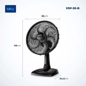 O Ventilador Super Power VSP-30-B da Mondial possui 30 cm de diâmetro e hélice com 6 pás, garantindo um ambiente mais refrescante e agradável. Já o sistema de ventilação da Mondial apresenta baixo nível de ruído e assegura o silêncio necessário para momentos de concentração e uma excelente noite de sono. Além disso, conta com alça de transporte, porta-fios e 3 níveis de velocidade, Máxima Turbo, Média Conforto e Mínima Silencioso. Aproveite a qualidade que só a Mondial oferece!