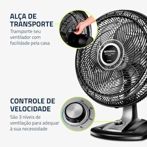 controle de velocidade: as 3 opções de velocidade permitem adequar o vento à sua necessidade;