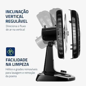 inclinação vertical regulável: para um direcionamento ideal do fluxo do ar;