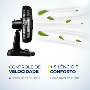 - CONTROLE DE VELOCIDADE: As 3 opções de velocidade permitem adequar o vento à sua necessidade.