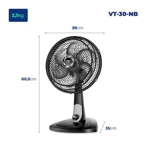 O Ventilador Mondial Turbo VT-40-NB é vento mais forte. Ele tem baixo nível de ruído, sistema oscilante lateral, inclinação vertical regulável, além ser compacto e ter baixo consumo. Sua hélice tem design aerodinâmico, o que proporciona um vento forte. Para ambientes mais amplos, você pode usar seu sistema oscilante. A inclinação vertical regulável direciona o fluxo de ar para cima ou para baixo. A grade frontal é removível e fácil de montar e desmontar para limpar. Possui alça para transporte e base antiderrapante para mais segurança.