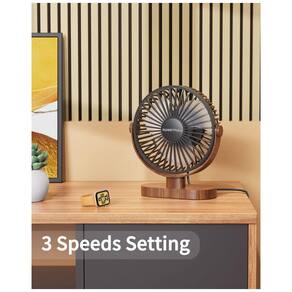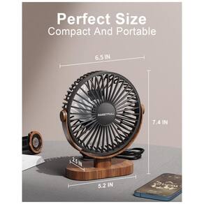 Portátil e Silencioso: Pesando apenas 284 g e com dimensões de 16,5 x 6,4 x 18,7 cm, este ventilador opera a menos de 50 dB, tornando-o ideal para casa, escritório, camping e muito mais. A elegante base de plástico com textura de madeira acrescenta um toque de sofisticação ao seu espaço.