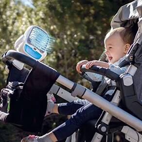 O mini ventilador possui dois jatos de resfriamento umidificante. Proporcionando um ambiente mais fresco. Além de ser giratória, podendo mover para qualquer lado que precisar.