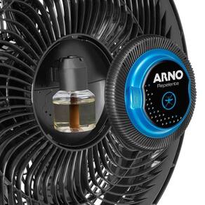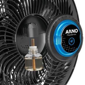 O refil é localizado no centro da grade, sendo fácil de trocar e aceita todos os frascos de repelentes disponíveis no mercado. Possui grande eficácia de uso, com longa duração de até 70 noites sem precisar trocar o refil. Possui também a tecnologia Arno Ultra Silence Force: design exclusivo e tecnologia patenteada, com desenho da grade inspirado em uma turbina de avião. É o ventilador mais forte e silencioso do Brasil!