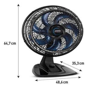 Design Moderno e Funcionalidade Disponível nas cores azul e preto, o ventilador X-Treme da Arno se destaca pelo seu visual elegante e robusto. Com 50,10 cm de altura, ele se encaixa perfeitamente em qualquer espaço, seja em casa ou no escritório, proporcionando ventilação eficiente sem ocupar muito espaço. A grade de 49 cm de diâmetro garante segurança e otimiza a distribuição de ar.