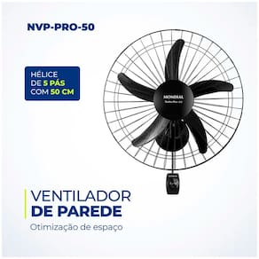 Não passe mais calor com o Ventilador de Parede NVP PRO50 da Mondial! São 150W de potência e 3 velocidades para você utilizar de acordo com suas necessidades. Confira mais detalhes: