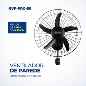 O Ventilador de Parede Turbo Pro NVP-PRO-50 da Mondial possui 50 cm de Diâmetro e um design aerodinâmico de alta performance, que garante um ambiente sempre fresquinho, mesmo nos dias de calor intenso. O motor Turbo Pro de 150W, aliado a Hélice de 5 pás, gera mais intensidade do vento e maior vazão do ar.
