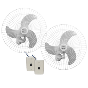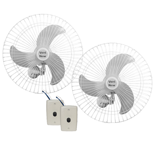 Kit composto de 2 Ventiladores Oscilantes de Parede Vent New 60cm Bivolt 200w Grade Aço Branco Código 00112