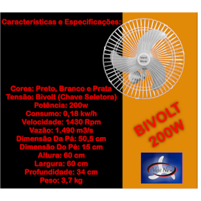 Ventilador robusto, potente e vento forte ideais para ambientes que requerem bastante ventilação. Promovem uma ótima ventilação de ar proporcionando um ambiente refrescante. Características e Especificações: