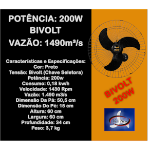 Ventilador robusto, potente e vento forte ideais para ambientes que requerem bastante ventilação. Promovem uma ótima ventilação de ar proporcionando um ambiente refrescante. Características e Especificações: