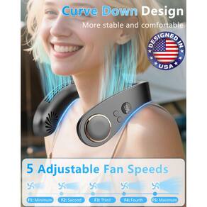- ?Design ergonômico e 5 velocidades de vento?O ar condicionado pessoal adota um design de aparência ergonômica. O ar condicionado do pescoço é confortável de usar sem deslocamento, permitindo que você use facilmente o ventilador de pescoço de resfriamento em várias situações móveis. O ventilador de pescoço tem 5 velocidades (F1: 19,5 horas, F2: 13,5 horas, F3: 9,5 horas, F4: 8 horas, F5: 7,5 horas. ).velocidade do vento O ar condicionado CA para pescoço oferece um efeito de resfriamento abrangente. Na cabeça, pescoço ou lado, você pode facilmente aproveitar a brisa do ar condicionado com ventilador de pescoço