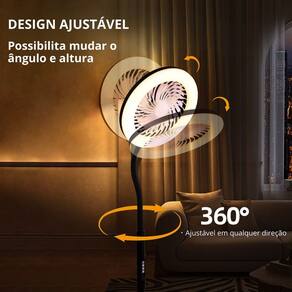 Luminária De Piso RGB Iluminação Quente e fria Profissional Com Ventilador Transforme sua rotina com um equipamento 2 em 1 que combina ventilação potente e iluminação LED profissional! Perfeito para gravação de vídeos, live streaming, maquiagens, estudos ou para manter o ambiente iluminado e fresco nos dias de calor. Dupla Funcionalidade Enquanto refresca seu ambiente, desfrute de três níveis de iluminação padrão para o seu ambiente.Iluminação RGB Completa Além dos três níveis de temperatura na iluminação padrão, você terá acesso a iluminação RGB, para decorar seu ambienteModos de iluminação RGB:
