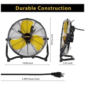 Inclinação ajustável de 180°: A cabeça do ventilador gira para direcionar o fluxo de ar, permitindo que você escolha a inclinação ideal, seja para ventilação ou resfriamento. Ideal para uso em dormitórios, escritórios, oficinas, porões, quartos e muito mais.