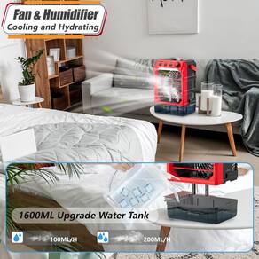 ClimatizadorRozlchar Ventilador de nebulização portátil 2 em 1 compatível com bateria Milwaukee de 18 V (sem bateria) com alimentação USB, ventilador de resfriamento externo com névoa, função de temporização, tanque de água de 1600 ml e LED para casa, exterior, acampamento