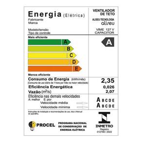 O ventilador de teto Aliseu Vime combina elegancia e desempenho, ideal para ambientes de ate 25 m2. Possui quatro pas de MDF revestidas com juta sintetica, garantindo um visual natural e sofisticado. Equipado com motor de 150 W e selo Procel A, oferece tres velocidades com rotacao maxima de 370 rpm e fluxo de ar de ate 2,35 m3/s. A iluminacao e feita por globo de vidro com soquete para duas lampadas E27 de ate 30 W nao inclusas . O produto acompanha controle de parede, e resistente a maresia e ja vem pre-montado, facilitando a instalacao. Indicado para uso residencial, possui certificacao INMETRO e de 24 meses. Resumo das principais caracteristicas: Marca: Aliseu Modelo: Vime Voltagem: 120V Potencia: 150 W Diametro: 105 cm Numero de pas: 4 Material das pas: MDF com juta sintetica Iluminacao: 2 lampadas E27 nao inclusas Velocidades: 3 Controle: de parede Fluxo de ar: ate 2,35 m3/s Rotacao maxima: 370 rpm Area recomendada: ate 25 m2 Peso: 5,8 kg Resistencia a maresia: sim Pre-montado: sim Certificacao: INMETRO : 24 meses Marca: Não Informado Ean: 827886296057